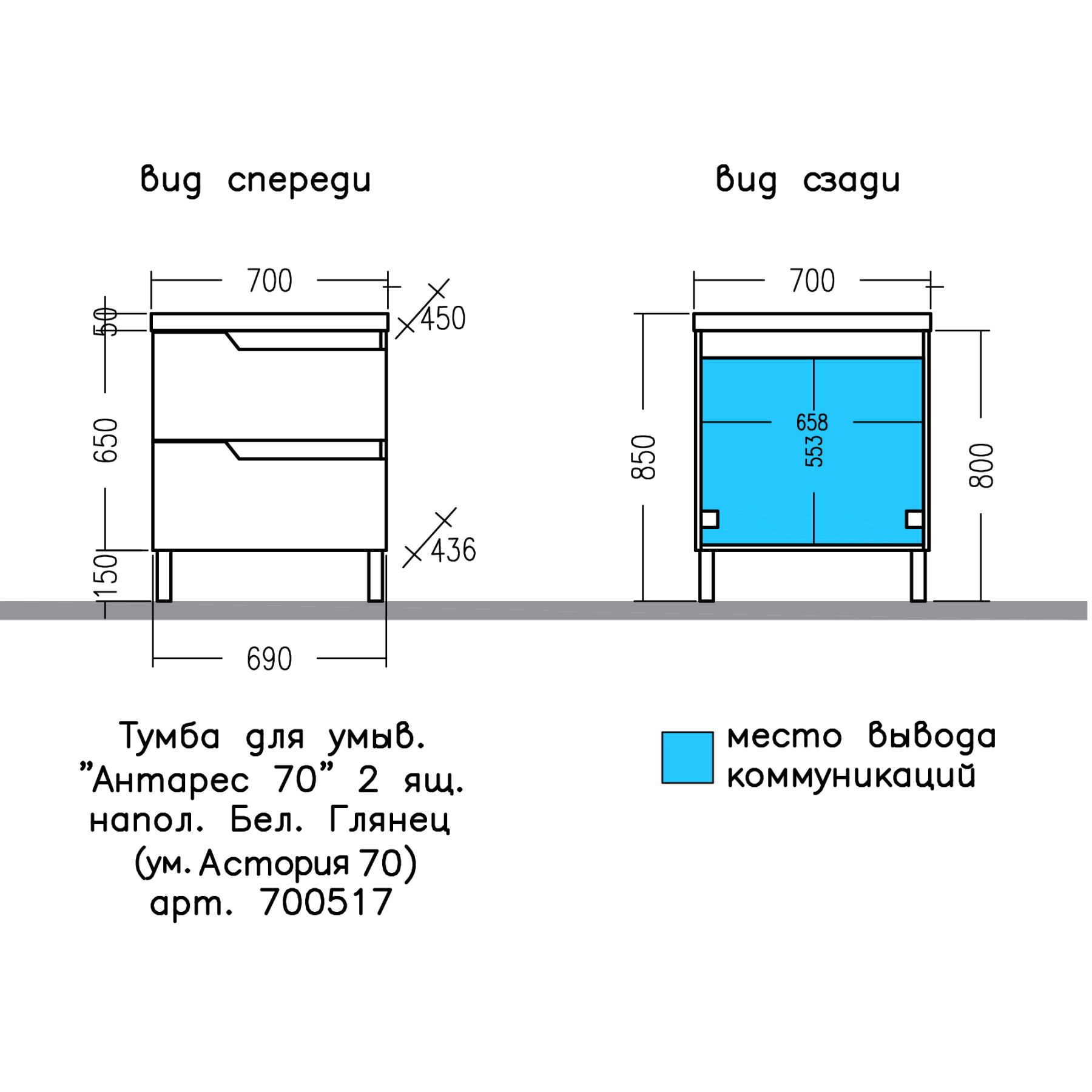 Напольная тумба под раковину Санта Антарес 700517 70 см белый глянец купить