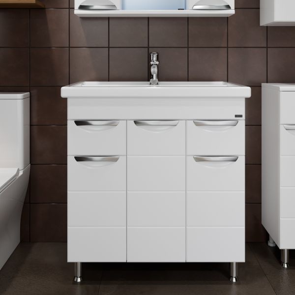 Тумба под раковину Санта Родос 80 под умывальник Фостер 80 — это воплощение современного и стильного дизайна, созданное специально для вашей ванной комнаты. Она оборудована тремя дверцами и двумя ящиками, что обеспечивает лёгкий доступ к её содержимому. Фасады тумбы выполнены из МДФ с фрезеровкой и покрыты глянцевой ПВХ-пленкой, а боковины — из белого влагостойкого ЛДСП. Хренение за дверцами и ящиками позволяет организовать пространство с максимальной функциональностью.
