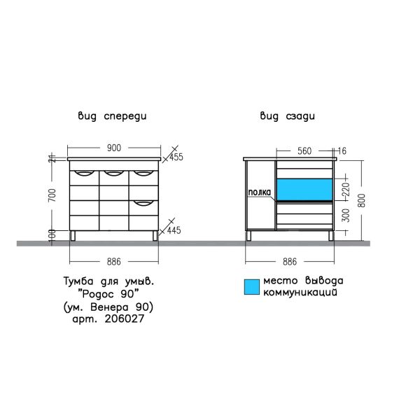 О коллекции: Коллекция Родос - современная и стильная мебель по приемлемой цене. Фасадные и боковые стенки мебели выполнены из МДФ покрытого ПВХ плёнкой. Тумба напольная "Родос 90" для умывальника "Венера 90". Тумба имеет оптимальную организацию внутреннего пространства. Комплектуется современной прямоугольной раковиной из литьевого мрамора с удобным крылом.