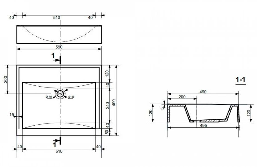 • Раковина Эстет Комфорт 59 (ш/в/г): 590x120x495 мм
