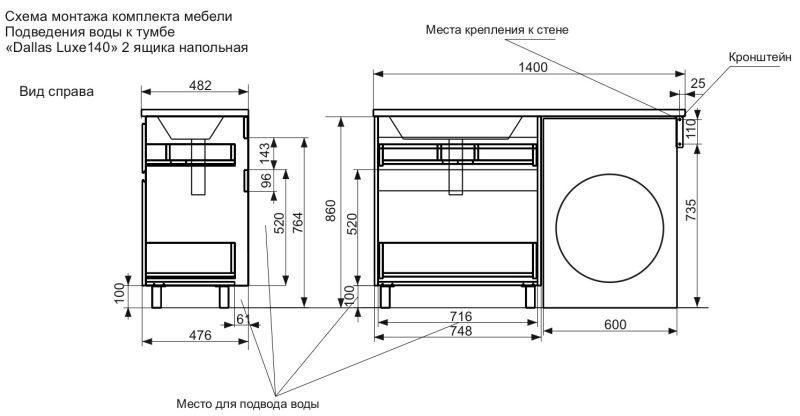 Напольная тумба с раковиной Эстет Dallas Luxe ФР-00002519 Л 140см два ящика белый