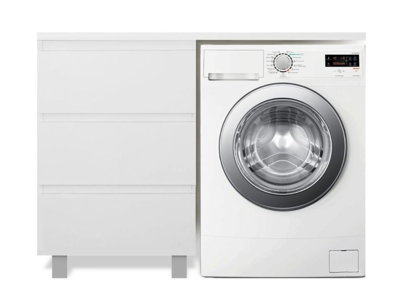 Приоритетом в выборе тумбы с раковиной является площадь ванной комнаты. Функциональная тумба с тремя ящиками решит вопрос для большинства покупателей. Тумба укомплектована раковиной из литьевого мрамора с удобной чашей, стиральная машина устанавливается под столешницей. Три ящика позволят распределить как крупные, так и мелкие вещи.