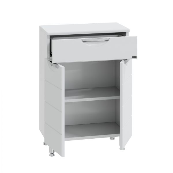 Комплектация: Ручка хром - 3 шт, выдвижной ящик с шариковыми направляющими 1 шт, на дверках петли плавного закрывания, ножка хром - 2 шт, ножка пластик - 2 шт Тумба напольная СаНта Родос 60 с 1 ящиком напольная предназначена для хранения различных мелочей в ванной комнате. Комод в ванную комнату изготовлен из влагостойких материалов, фасад и столешница комода для ванны изготовлена из МДФ, корпус из влагостойкого ЛДСП. Комод для ванной комнаты оснащен ящиком полного выдвижения ( без плавного закрывания). Ножки у комода для ванны идут в комплекте. Купить комод для ванной комнаты вы можете оформив заказ у нас на сайте. Также вы можете подобрать к комоду тумбу с раковиной из коллекции Родос.
