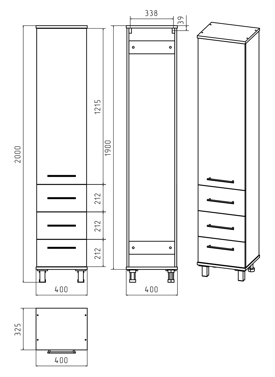 Напольный шкаф - пенал Misty Терра 40см с тремя ящиками левый серый купить
