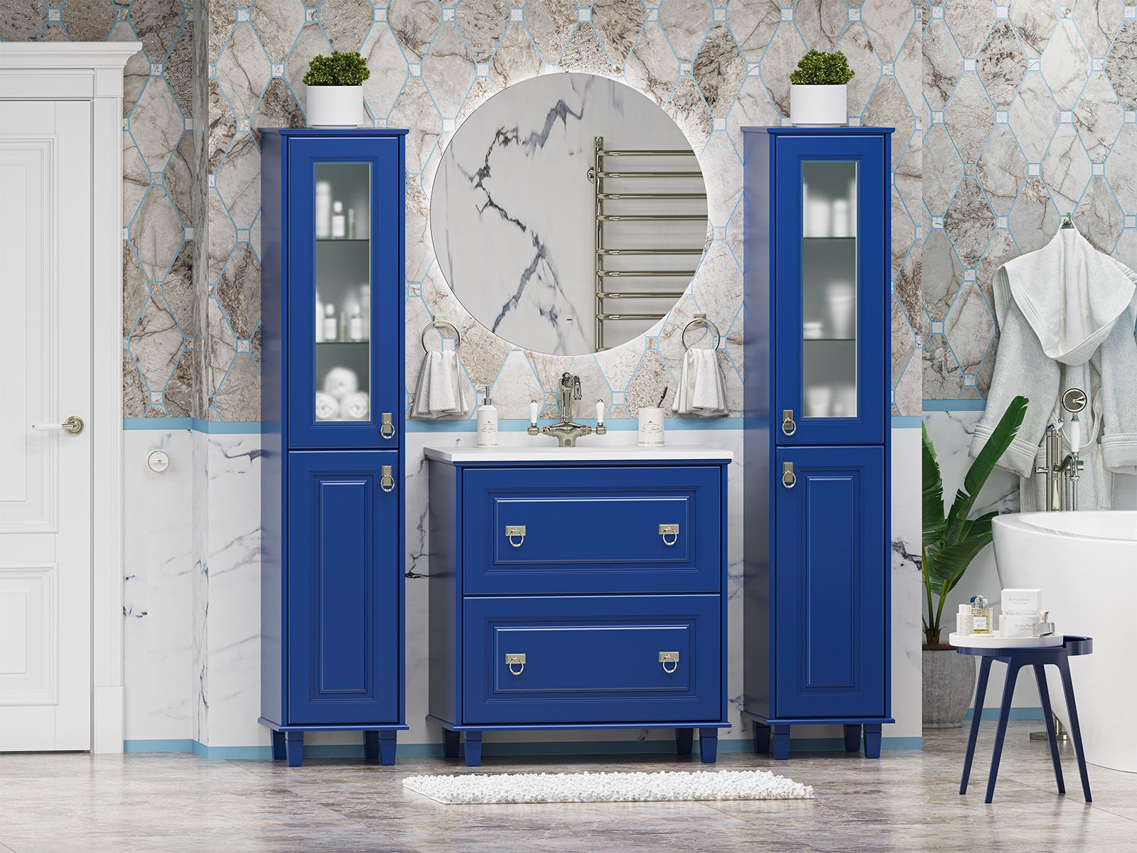 Напольный шкаф - пенал Misty Версаль 35см левый синий