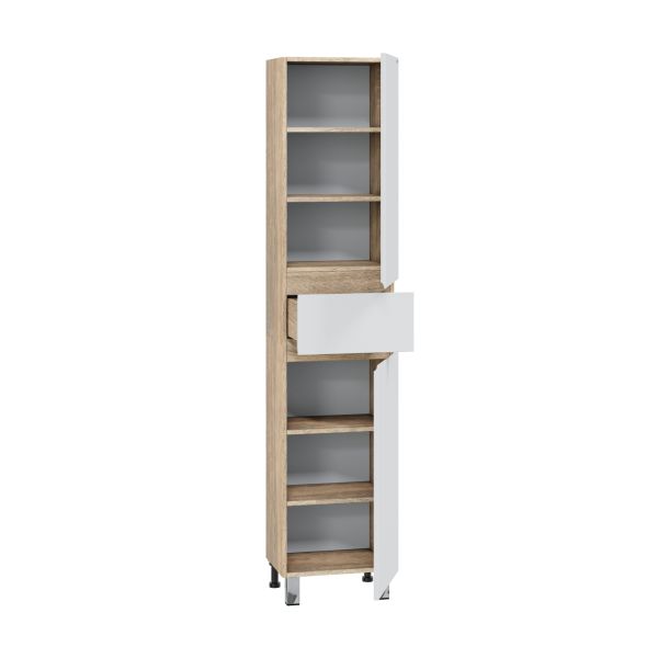 Комплектация: на дверках петли плавного закрывания - 2 шт., шариковые направляющие - 1 шт., полочки - 4 шт., ножки хром - 2 шт, ножки пластик - 2 шт. Шкаф-пенал для ванной СаНта Марс 40 напольный. Фасады шкаф-пенала для ванной комнаты изготовлены из МДФ, корпус колонны из влагостойкого ЛДСП. Фасады шкаф-колонны для ванной комнаты покрыты эмалью, боковины - ламинат. Шкаф-пенал для ванны 40 см укомплектован съемными полочками из ДСП, двумя хромированными ножками и двумя пластиковыми. Петли у колонны с плавным закрыванием. Выдвижной ящик укомплектован шариковыми направляющими полного выдвижения ( не плавного закрывания). Купить шкаф-пенал для ванны вы можете оставив заказ на нашем сайте. Шкаф-колонну вы можете приобрести в дополнение к тумбам из коллекции Санта МАРС.