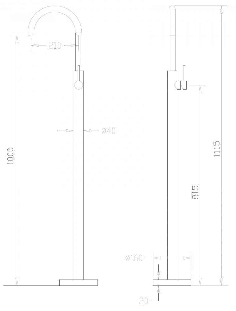 • Высота смесителя: