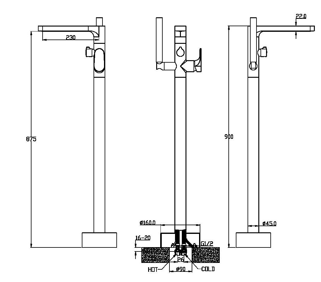 Напольный смеситель для ванны Boheme Spectre 459-CR хром