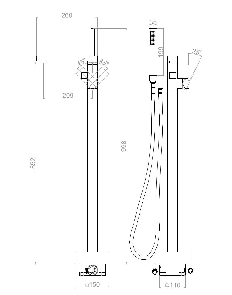 Напольный смеситель для ванны DQ Bayern.Liszt DA1516008 белый матовый