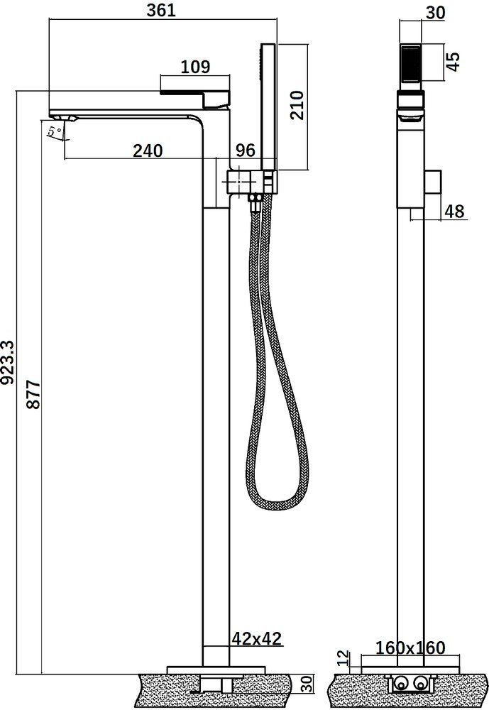 Напольный смеситель для ванны с душем STWORKI Карлстад KAS-05cr