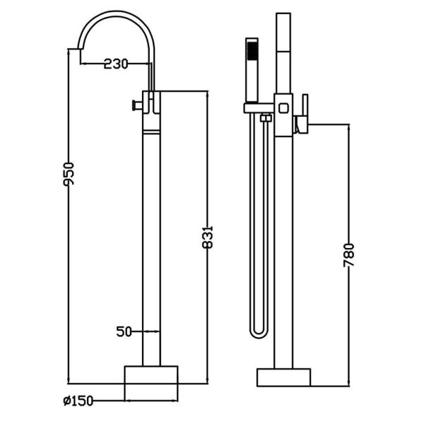 Напольный смеситель для ванны Swedbe Spira 4003 хром