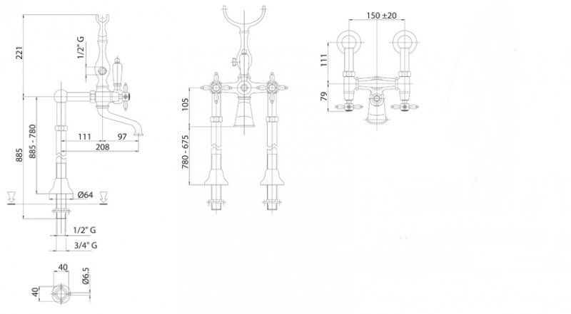 Напольный смеситель для ванны, золото Cezares NOSTALGIA-VDP-03/24-M купить