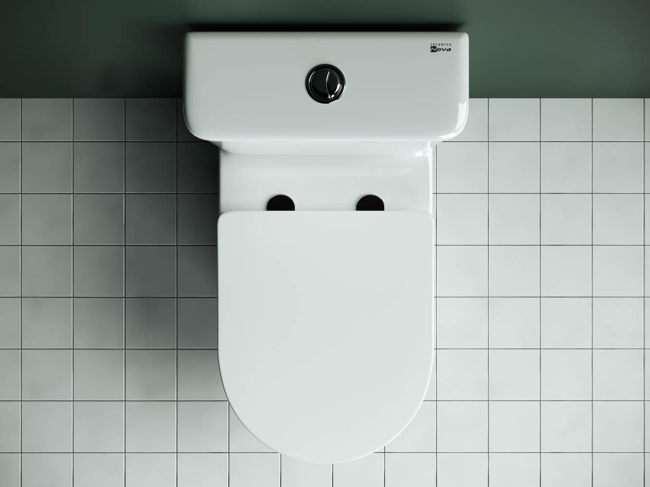 Напольный пристенный унитаз с бачком Star Rimless, двойной смыв 3/6, нижняя подводка глубокий смыв, горизонтальный (универсальный) выпуск, с крепежом, ультра тонким сидением с функцией плавного закрытия, дюропласт