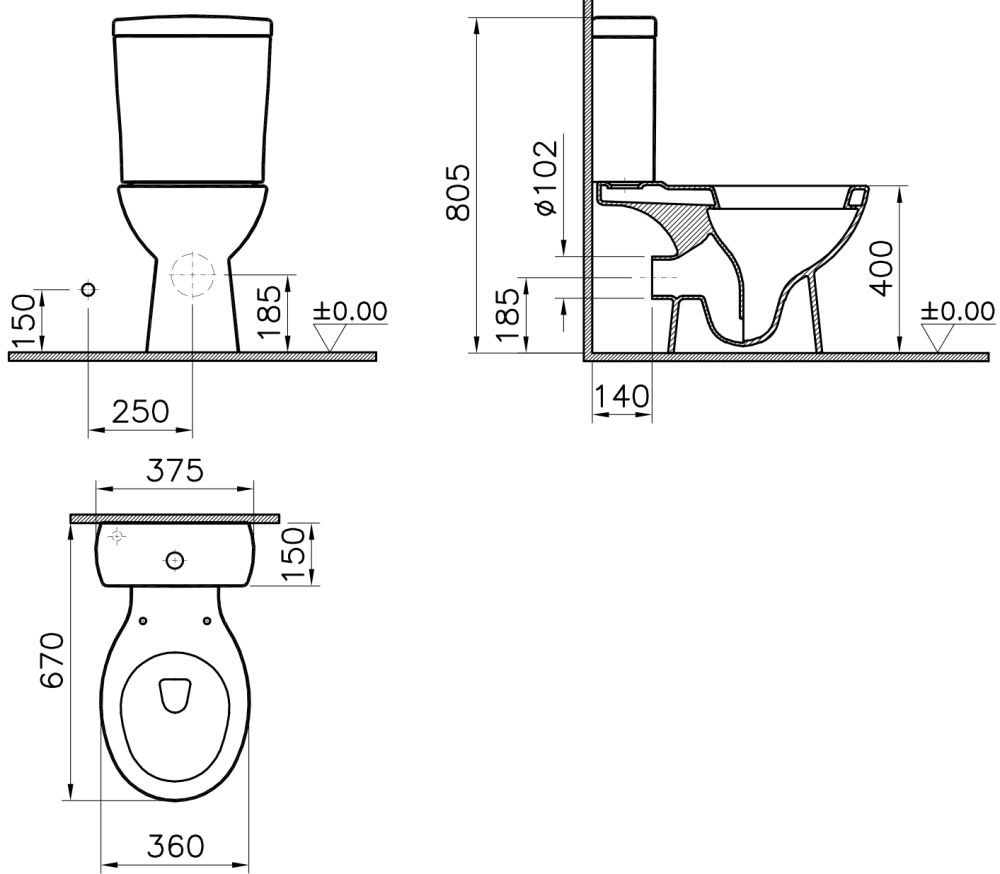 • Укороченный унитаз: