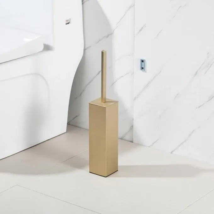 Ершик для унитаза - незаменимая вещь в любом хозяйстве. Он позволяет хорошо и качественно очистить унитаз в труднодоступных местах, благодаря своим гибким ворсинкам, и при этом не царапает поверхности. Цвет изделия - сатиновое матовое золото. Данный цвет очень хорошо зарекомендовал себя в быту, так как на нем не видны разводы, а покрытие держателя для ершика защищает его от коррозии и известкового налета.