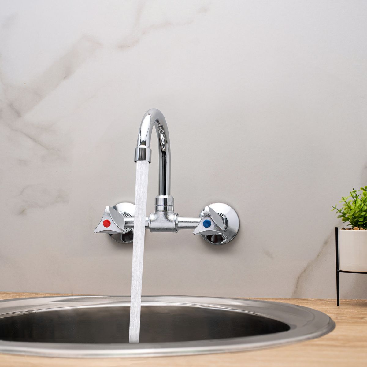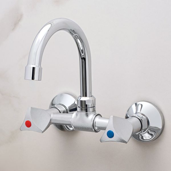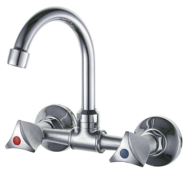 Настенный двуручковый смеситель для кухни из данной серии обладает не отполированным хромированным корпусом и полированным высоким изливом, удобен и практичен в использовании.