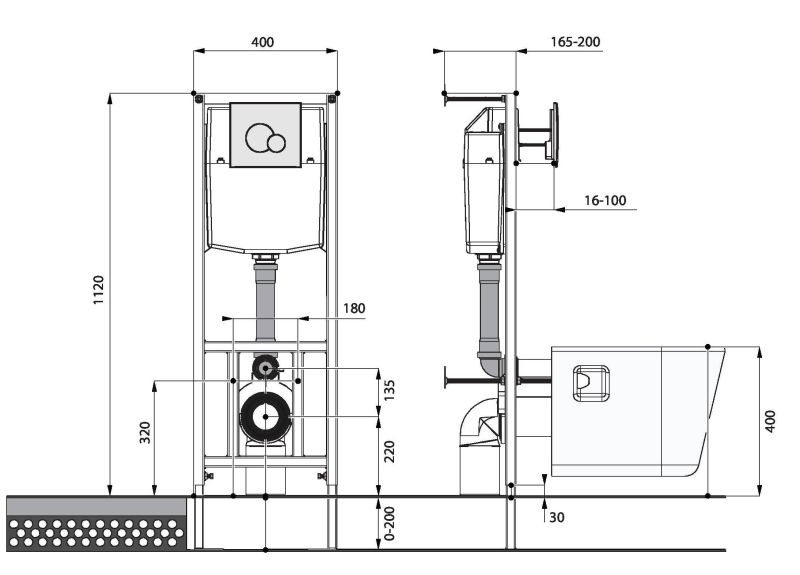 • Монтаж: подвесной, на инсталляцию.
