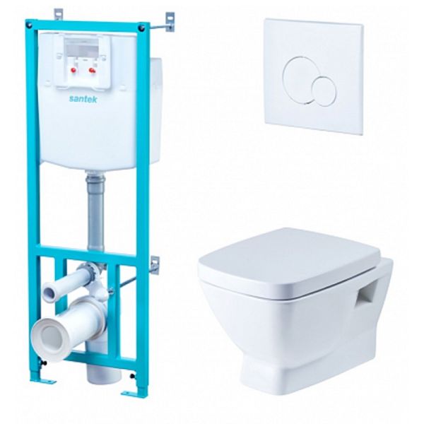 Комплект унитаза Santek Нео 1.WH50.1.543 с инсталляцией, хромированной клавишей смыва и сиденьем Soft Close - все необходимое в одной коробке.