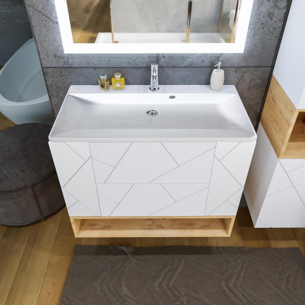 Полка для тумбы Бриклаер Кристалл 4627125415913, 90 см, подвесная, цвет дуб бунратти