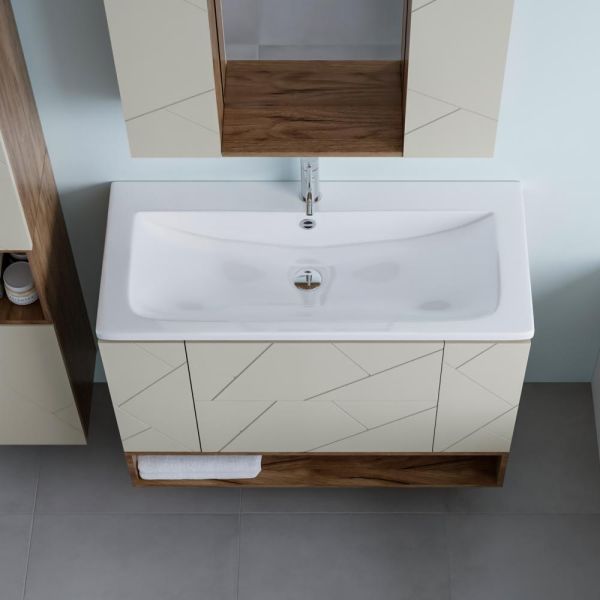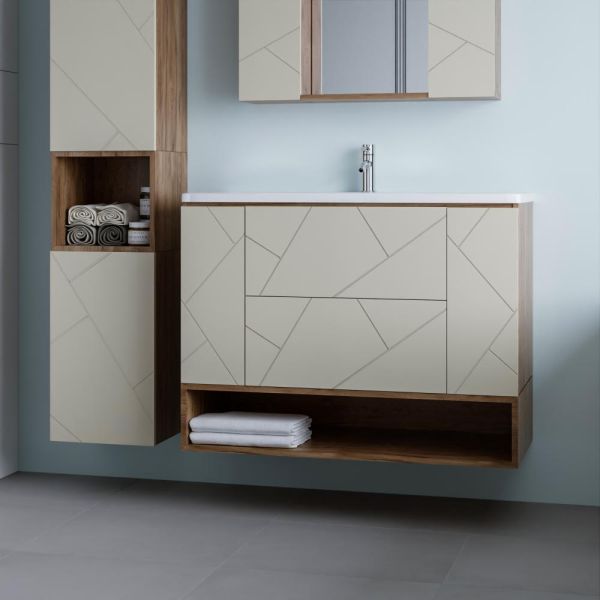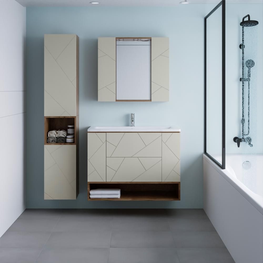 Изделие предназначено для рационального хранения косметики, гигиенических принадлежностей, полотенец и других мелочей, помогая поддерживать порядок и освобождая поверхность тумбы. Полка изготовлена из влагостойкого ЛДСП, устойчивого к деформациям, воздействию пара и брызг, что обеспечивает долговечность даже в условиях повышенной влажности.