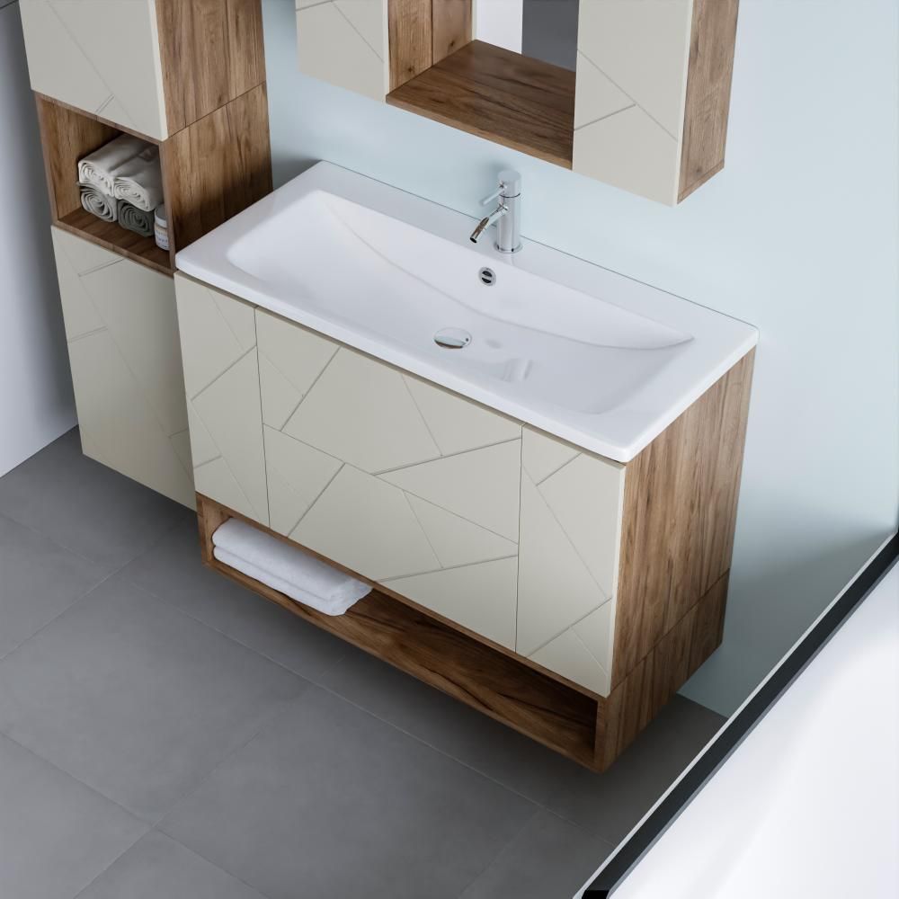 Полка для тумбы Бриклаер Кристалл (артикул 4627125416835) шириной 100 см — это эргономичное и эстетичное решение для организации пространства в ванной комнате. Модель подвесного типа, выполненная в цвете «дуб крафт табачный», гармонично сочетается с современной мебелью и добавляет интерьеру натуральности и тепла.