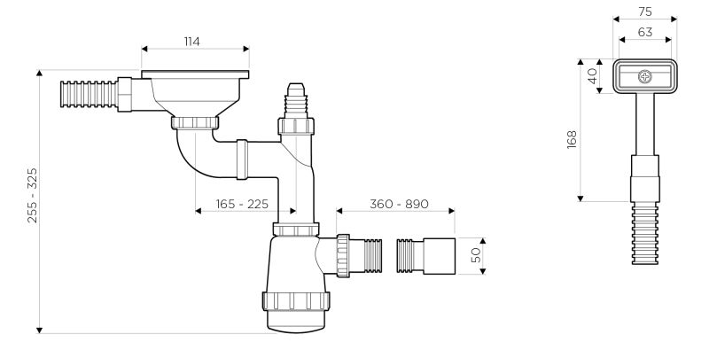Арматура для одночашевых моек со скрытым переливом. Подходит для моек из серий KASUMIGAURA, TOYA и TOVADA.