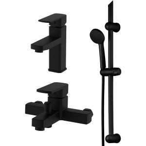 Комплект смесителей Orange OneLife P06-511b.Комплект смесителей изготовлен из запатентованного высокотехнологичного полимера, который выдерживает 510 000 циклов и 53 АТМ без замены изделия после теста на цикличность, а также исключает возможность обжечься при касании и не подвержен коррозии и окислению. Стойкий к отрицательным температурам.Характеристики:Цвет: черный матовый.