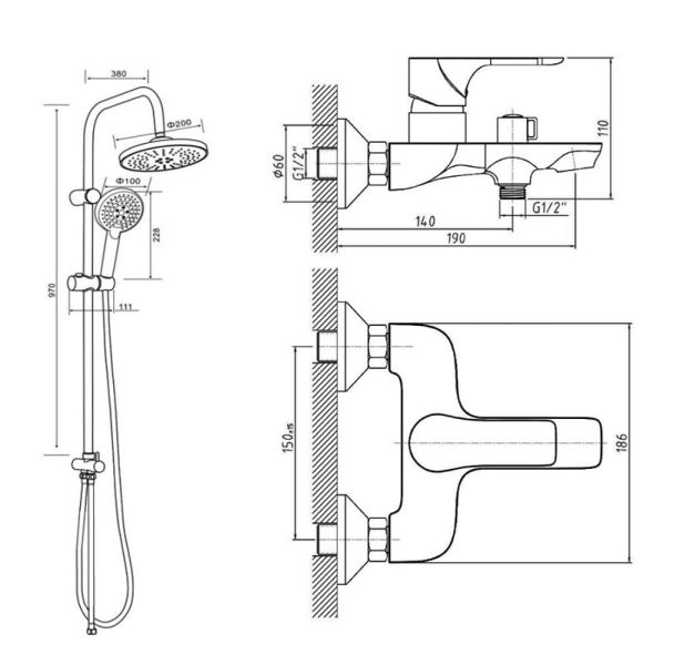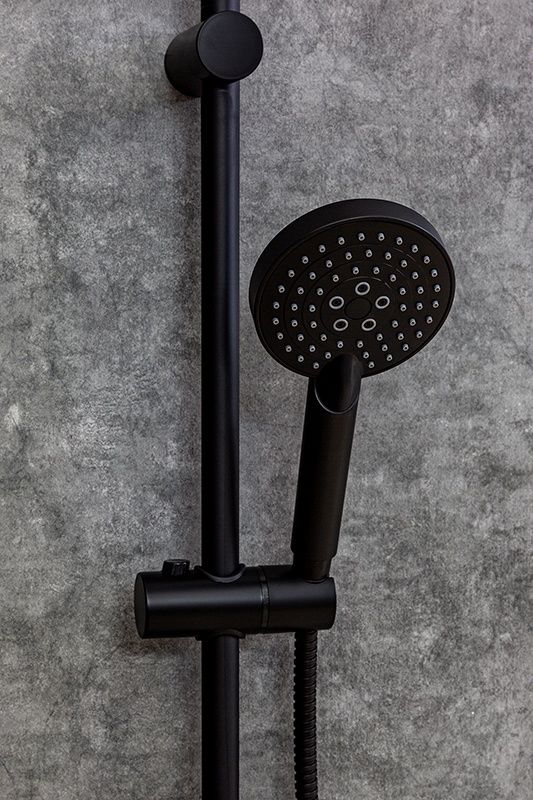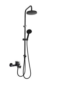 Душевая система с смесителем для ванны/душа в цвете черный матовый: верхний душ (d200 мм) создаёт эффект тропического дождя, что дарит непередаваемые эмоции во время ежедневных банных процедур. Ручной душ 100 мм (3 режима) на гибком полутораметровом шланге (в металлической оплетке) с защитой от перекручивания. Держатели верхнего и ручного душа с регулировкой угла наклона, штанга 970 мм. Подвижные детали отличаются долговечностью. Фиксируется душевая система непосредственно на стене, что позволяет рационально использовать ограниченное пространство ванной комнаты. Модное на сегодняшний день покрытие чёрного цвета, за которым просто ухаживать мягкой салфеткой, получено порошковой окраской с многоступенчатой системой подготовки и высокотемпературной обработкой.