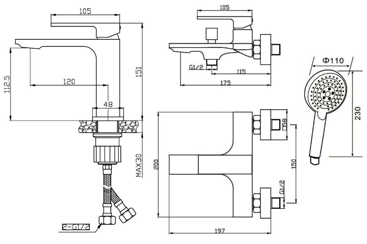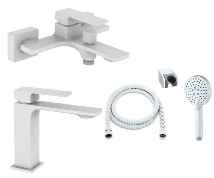 Набор смесителей для ванной комнаты Lutz от немецкой компании Orange – отличный выбор для интерьера в стиле минимализм. Латунное изделие устойчиво к коррозии и высоким температурам, а белое глянцевое покрытие делает незаметными разводы и высохшие капли. Керамический картридж обеспечивает долговечность изделия, стабильную подачу воды и мощный напор. Излив оснащен пластиковым аэратором, он создает ровную мощную струю и легко очищается от известкового налета. В комплекте душевой набор (душевая лейка d 110 мм 3 режима, шланг в металлической оплетке 1500 мм., настенный держатель лейки с регулировкой угла наклона).