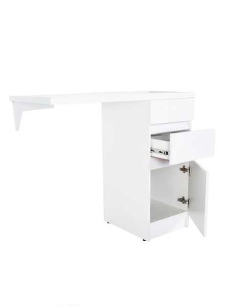 Тумба с раковиной под стиральную машину Orange Optima, правая, белый, ST-40TUW+RAROrange OPTIMA ST-40TUW+RAR Тумба напольная с правой раковиной под стиральную машину. Предназначена для использования в ванных комнатах с повышенной влажностью. Тумба укомплектована выдвижным ящиком, также для хранения предусмотрен нижний отсек с дверцей. Фасад - МДФ в цвете белый глянец, покрытие пленка ПВХ. Корпус - ЛДСП в цвете белый глянец. Раковина с одним отверстием под смеситель (материал - искусственный камень).В комплекте ножки подпятники 4 шт (регулировка по высоте до 10 мм) и кронштейн для крепления крыла раковины.