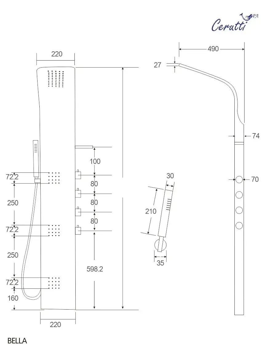 Панель душевая Cerutti SPA BELLA CT11128 с форсунками хром