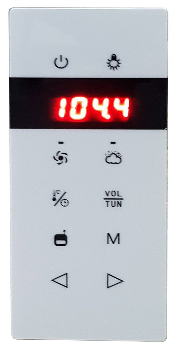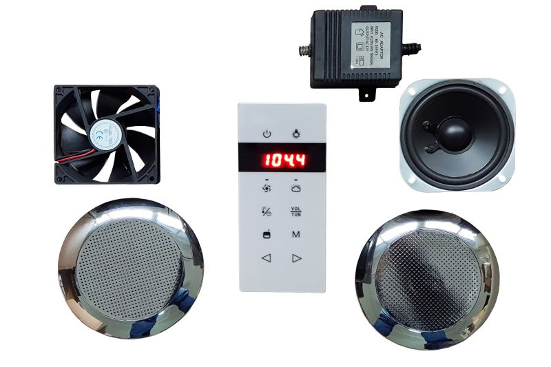 Данная позиция включает в себя:- пульт для управления душевой кабиной;- озонация воздуха (очистка воздуха в кабине от микробов);- вытяжной вентилятор;- радио;- подсветку;- динамик. Позиция врезается под заказ.