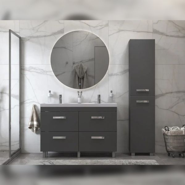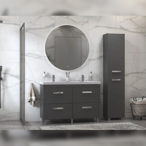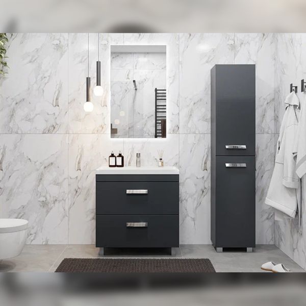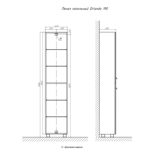 Пенал (40см) Velvex Orlando pn.ORL.40 графит, графит: 2 стеклянные полки в верхней секции, 2 стеклянные полки в нижней секции, петли с доводчиками.