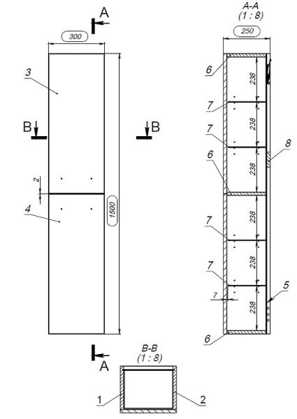 Габариты корпуса (ШхВхГ): 30x150x25 см.