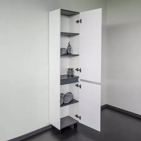 Габариты (ШхВхГ): 400*1900*300 ммНапольная шкаф-колонна отличное решение для хранения разных предметов необходимых в ванной комнате. За верхней дверцей три полки, за нижней одна. Фасады изготовлены из МДФ и окрашены белой глянцевой эмалью. Дверцы могут быть подвешены как в правом, там и в левом исполнении. Петли оборудованы механизмами плавного закрывания.