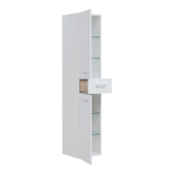Пенал Dreja.Rus 35, 2 дверки, 1 ящик, стеклянные полки, белый глянец