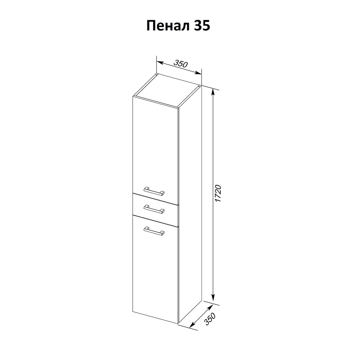 Пенал Dreja.Rus 35, 2 дверки, 1 ящик, стеклянные полки, белый глянец купить