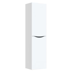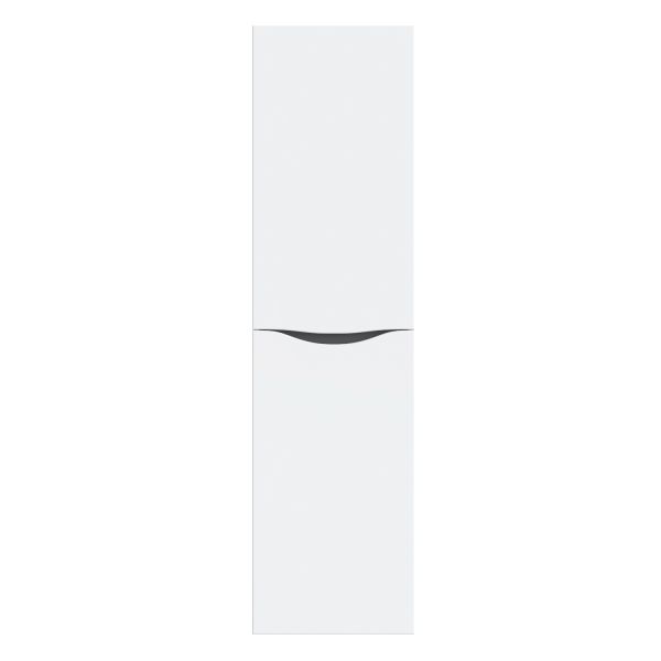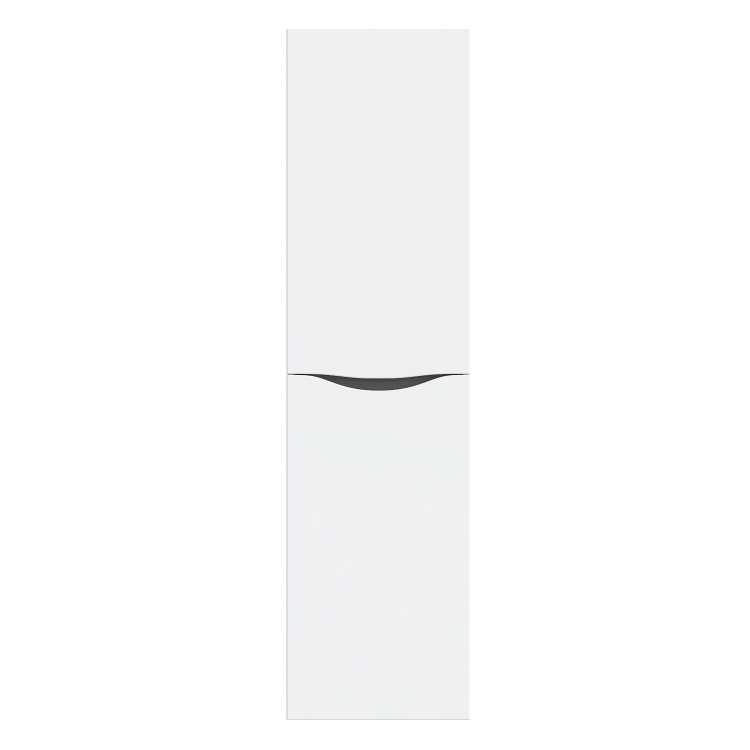 Пенал для ванной комнаты, подвесной. Размеры: 297х400х1500 мм (ДхШхВ). Фасады МДФ 19 мм в эмали (белый), фрезеровка. Корпус влагостойкий ЛДСП 16 мм в эмали. Две дверцы с интегрированными ручками. Стеклянные полки 4 мм с фиксаторами. Петли с доводчиками. Упаковка: картон, пленка, пенопластовые уголки.