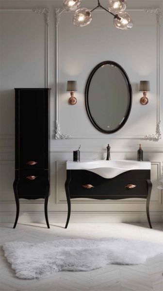 Шкаф пенал Clarberg Borgia 48 BOR0548BLK с одной распашной дверцей, выполненный в духе современной классики, отличается утонченными и изящными формами, которые подчеркивает патина под медь. Ручки в виде листьев эффектно дополняют образ мебели.Технические данные:Цвет: черный, патина медь.
