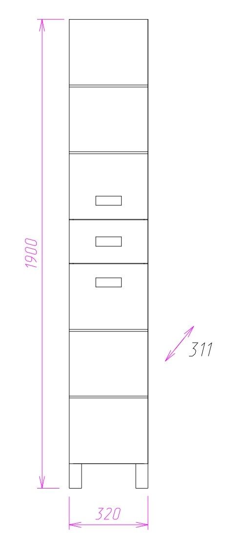 Корпус пенала выполнен из ЛДСП, фасад - из МДФ в пленке, устойчивых к механическим воздействиям, перепадам температур и высокой влажности.