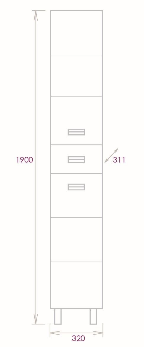 Размер пенала с ножками: 32х32х190 см.