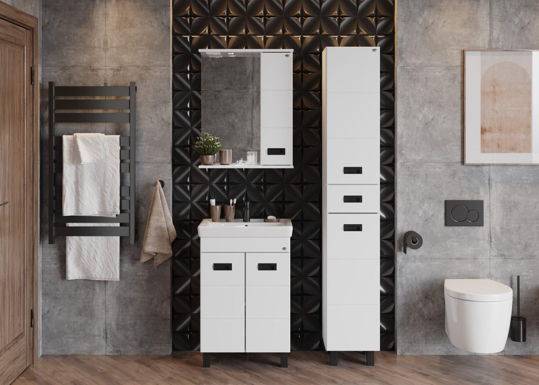 Напольный шкаф пенал для ванной комнаты Onika БАЛТИКА 32 Black - это простые функциональные формы и яркий акцент в любом дизайне.