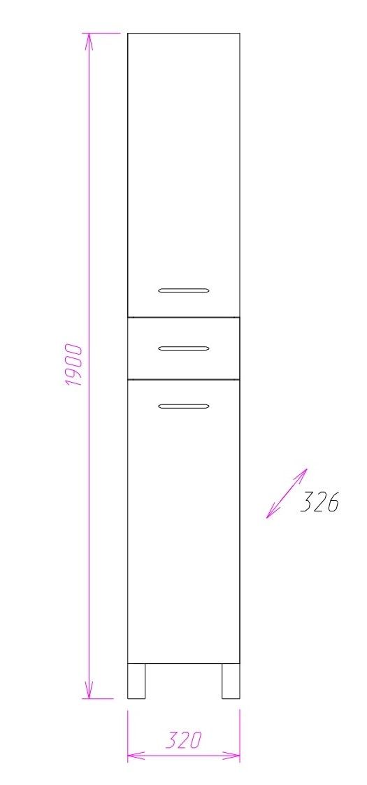 Размер пенала с ножками: 32х33х190 см.