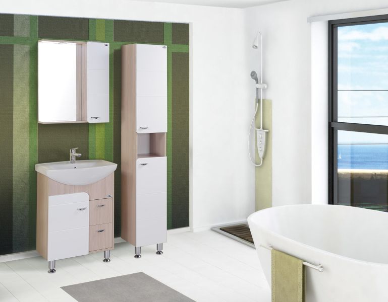 Напольный пенал для ванной комнаты пенал Onika СТИЛЬ 30 гармонично сочетает в себе контрастные цвета и фактуры: белый глянец на фоне натурального дерева ясень шимо светлый очень эффектно смотрится в любых интерьерах ванной комнаты.