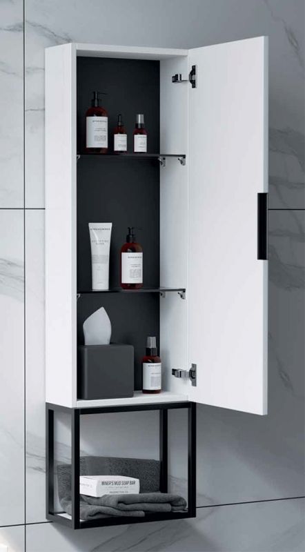 Подвесной шкаф пенал Clarberg Logic 35 LOG0435 с одной распашной дверцей и открытой полкой. Главная особенность коллекции - это применение алюминиевого анодированного профиля в чёрном цвете.Технические данные:Цвет: белый матовый.