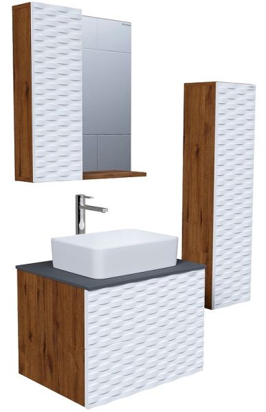 Подвесной пенал Альба- 30 смБелый матовый цвет с 3D рисунком безупречно сочетается с фактурой под дерево и позволяет пеналу органично вписаться в интерьер ванной комнаты.