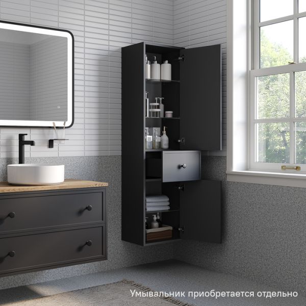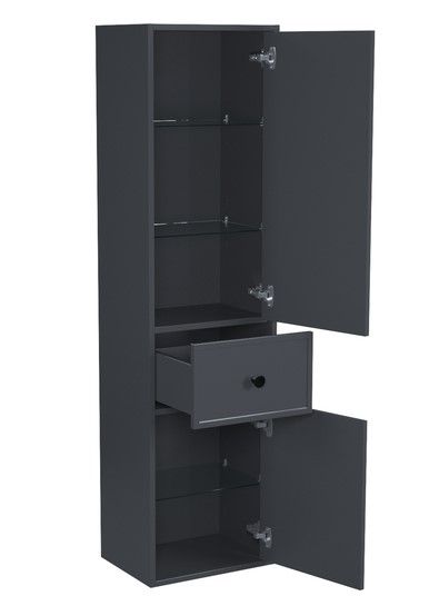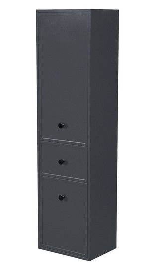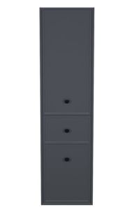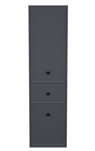 Подвесной пенал Torr трендового темно-серого цвета сочетает в себе узнаваемый стиль и практичность популярного скандинавского дизайна. Четкие формы пенала, фасады с декоративной филенкой, круглые ручки смотрятся гармонично и впишутся в любой современный интерьер.