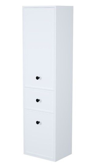 Подвесной пенал Torr универсального молочно-белого цвета сочетает в себе узнаваемый стиль и практичность популярного скандинавского дизайна. Четкие формы пенала, фасады с декоративной филенкой, круглые ручки смотрятся гармонично и впишутся в любой современный интерьер.