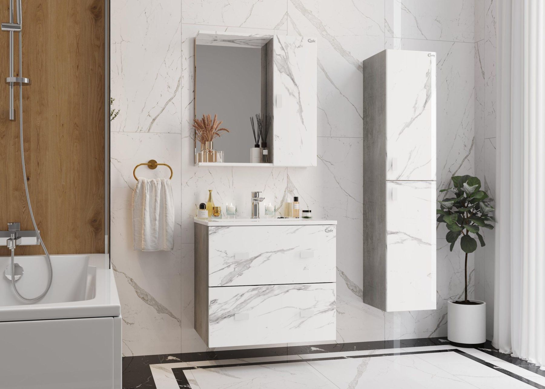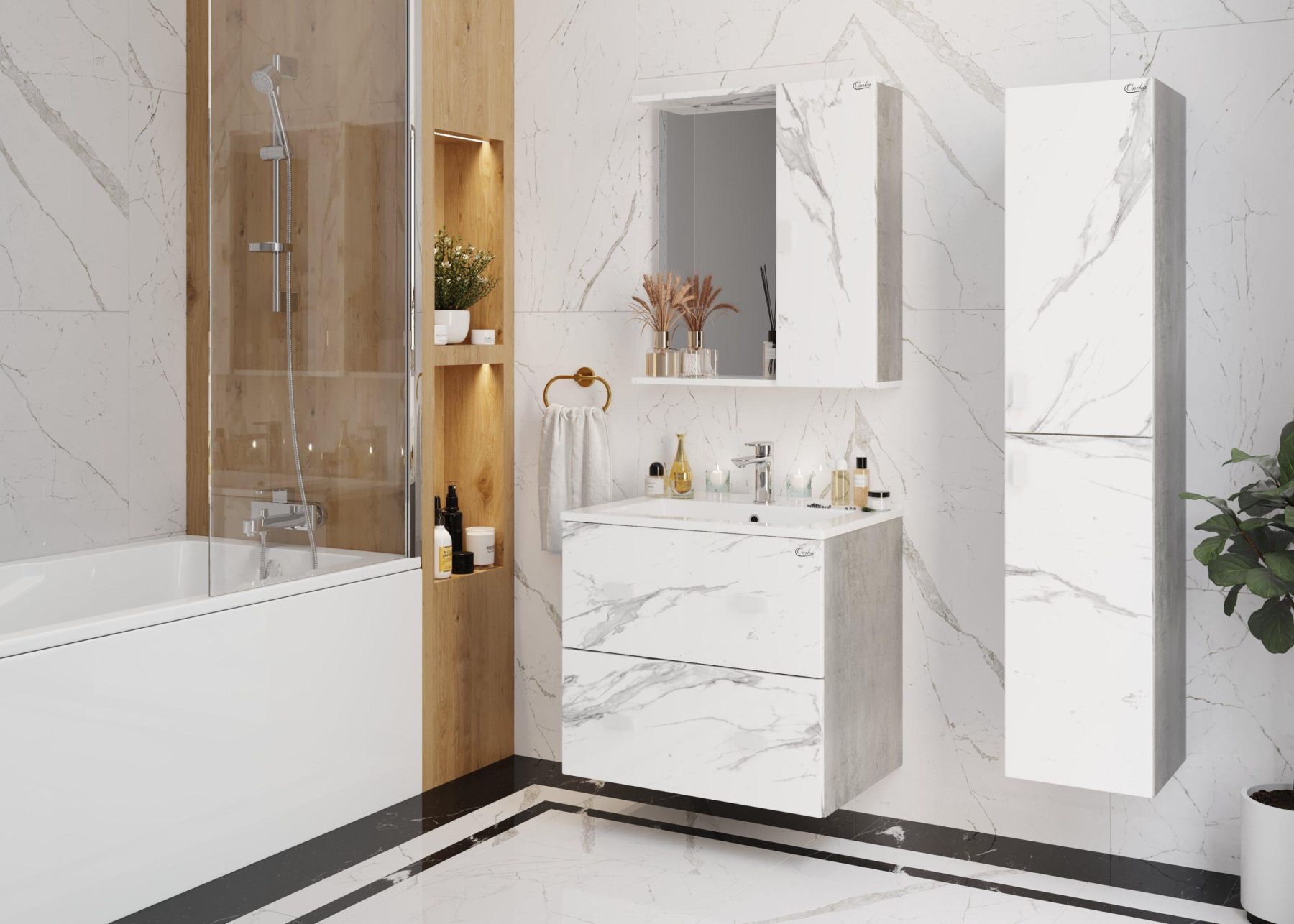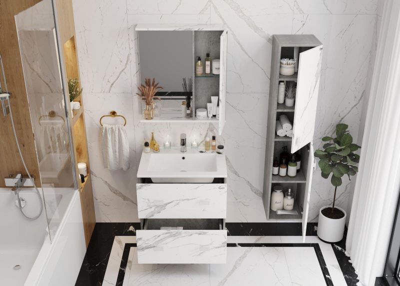 Подвесной пенал для ванной комнаты Onika МАРБЛ 30 станет стильным и функциональным элементом пространства современной ванной комнаты. Спроектированный дизайнерами в минималистичном облике, пенал отражает самые актуальные расцветки сезона - бетон и мрамор.