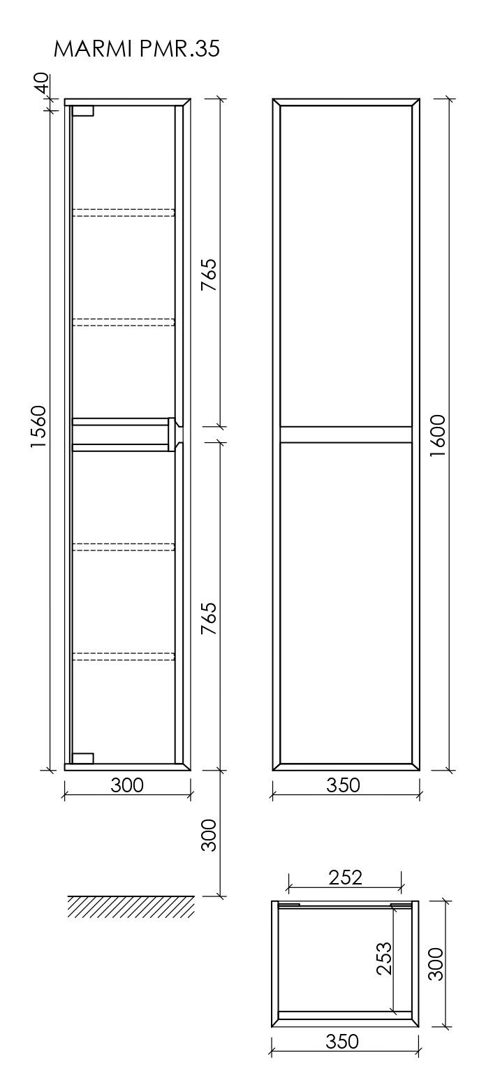 Шкаф-пенал SANCOS Marmi 1.0/Marmi 2.0 подвесной дуб чарльстон, две дверцы, петли с доводчиками, расположение петель R/L, 350х300х1600 мм, арт. PMR35ECH